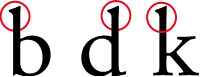 Asta de la letra que sobresale por encima de la altura de la X (ojo medio).